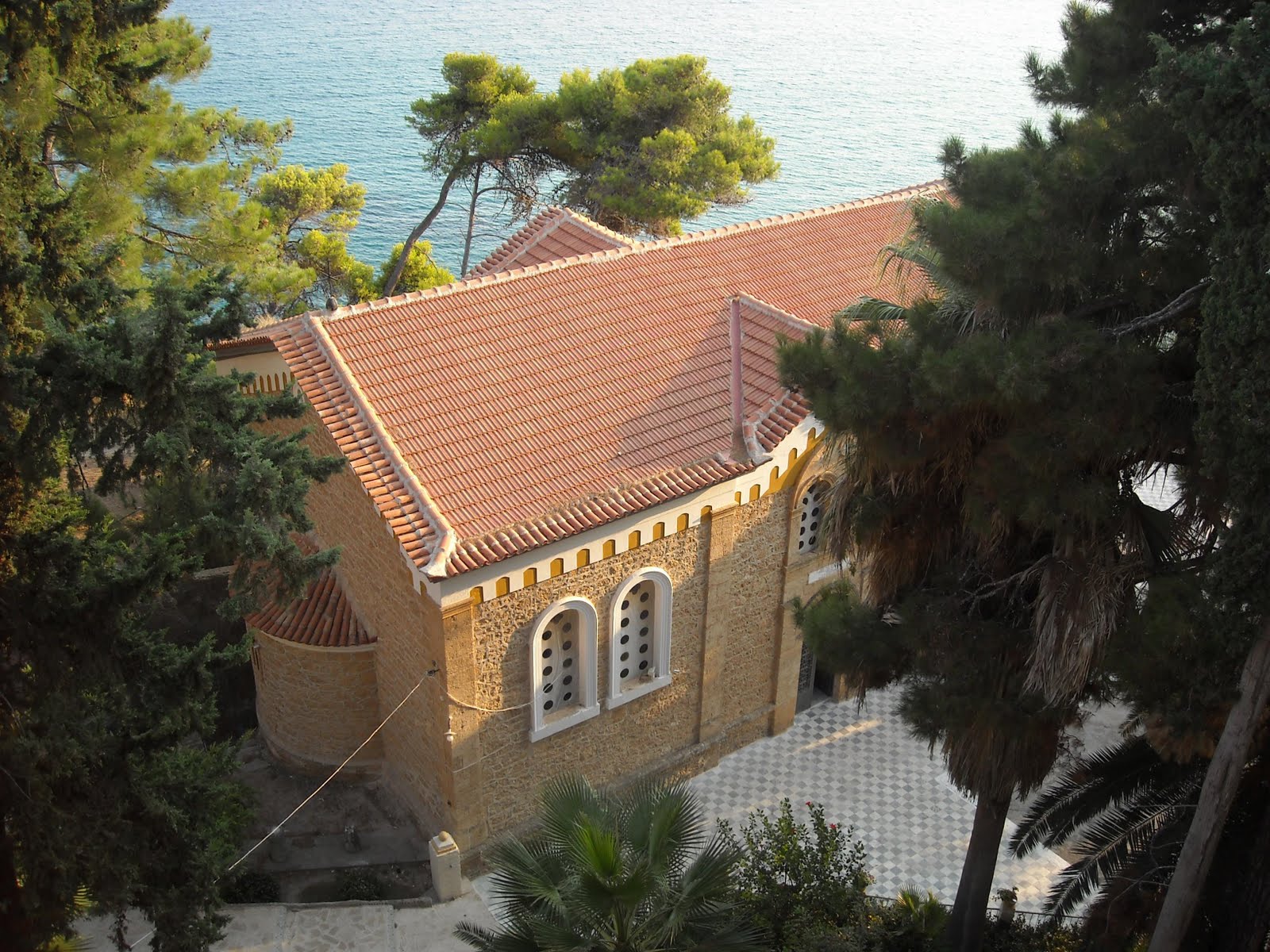 Απέναντι από το μοναστήρι βρίσκεται το κοιμητήριο του Αγίου Χαραλάμπους, στο ναό του οποίου τιμούσαν παλαιότερα οι καθολικοί τον "Άγιο Ρωη".